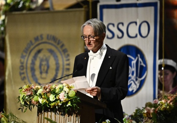 [스톡홀름=AP/뉴시스] 인공지능(AI)의 '대부'로 불리는 노벨물리학상 수상자 제프리 힌턴 캐나다 토론토대 명예교수가 AI의 위험성을
