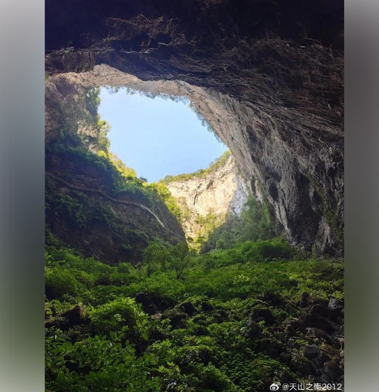 [뉴시스] 24일(현지시각) BBC에 따르면 중국 남부 광시성의 거대한 자연 싱크홀들이 새로운 관광명소로 떠오르고 있다. (사진= 웨이보 캡처) © 뉴시스