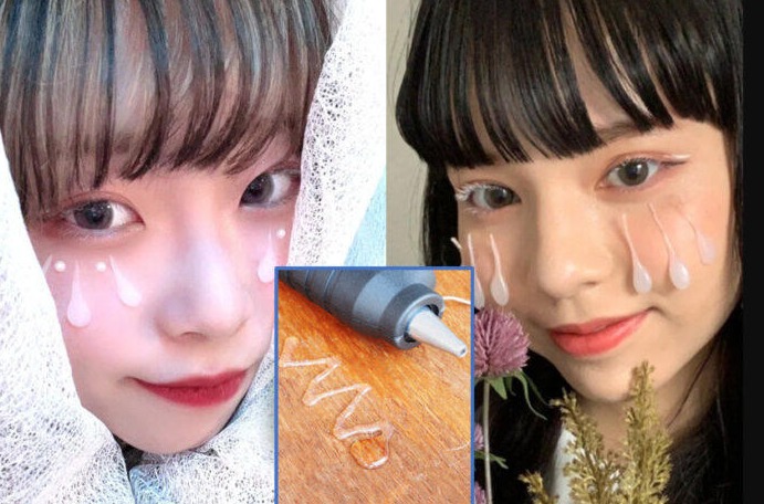 홍콩 사우스차이나모닝포스트(SCMP)는 뜨겁게 녹인 접착제(glue)로 눈물방울 모양을 만든 후 얼굴에 붙여 마치 눈물이 흘러내리는 듯한 느낌을 내는 ‘3D 눈물 메이크업(3D teardrop make-up)'이 최근 일본 여중생들 사이에서 유행이라고 보도했다. 이들은 뜨거운 접착제를 눈물 모양으로 짜내 식힌 다음 속눈썹 접착제로 얼굴에 붙인다. 이렇게 눈물 메이크업이 유행하면서 일부 지역에서는 핫멜트 글루(hot melt glue) 품귀 현상이 벌어지기도 했다