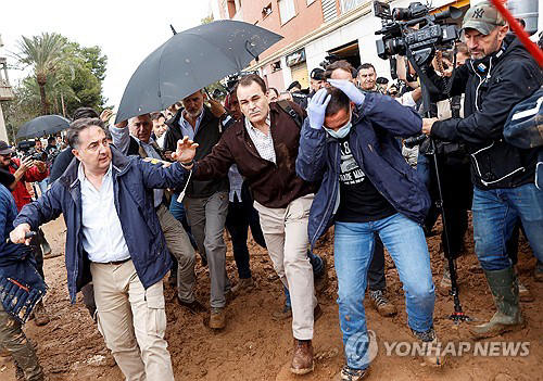 펠리페 6세 스페인 국왕과 페드로 산체스 총리가 대홍수로 큰 피해를 본 현장을 찾았다가 분노한 수재민들에게 욕설과 함께 진흙을 맞는 '봉변'을 당했다.