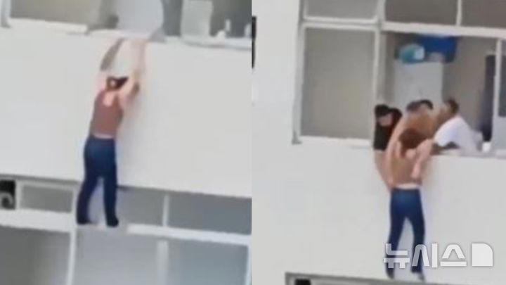 브라질의 한 고층 아파트에서 창문을 닦다가 미끄러진 여성이 창틀을 붙잡고 버티다 구조되는 극적인 영상이 포착됐다.