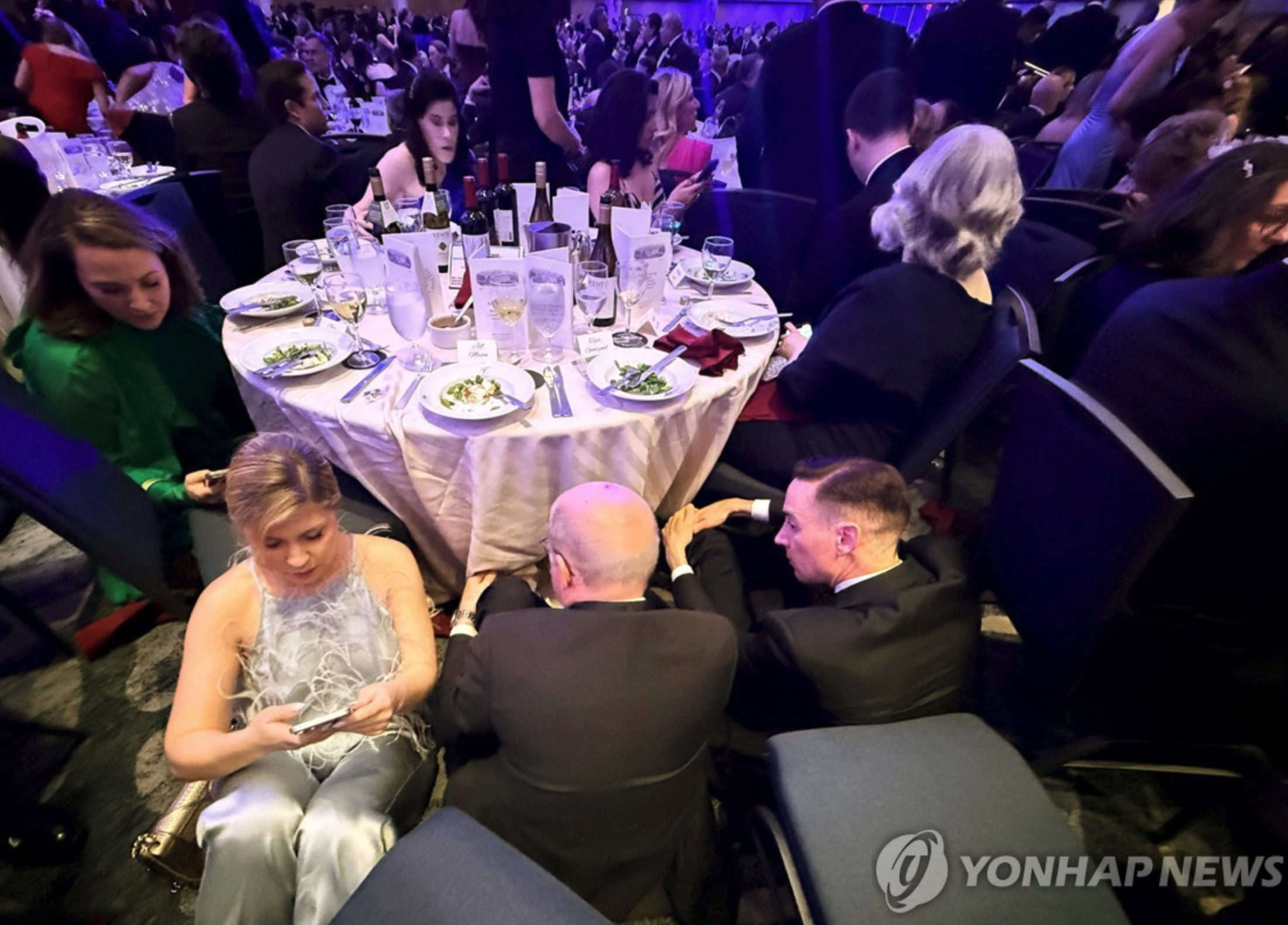 그는 트럼프 대통령이 행사장을 빠져나가고 무장 요원들이 돌아다니는 등 만찬장이 아수라장이 된 와중에도 트럼프 대통령이 앉아 있던 연단 쪽을 쳐다보거나 이날 전채 요리로 나왔던 부라타 치즈 샐러드를 먹으며 주변을 둘러보기만 했다.
