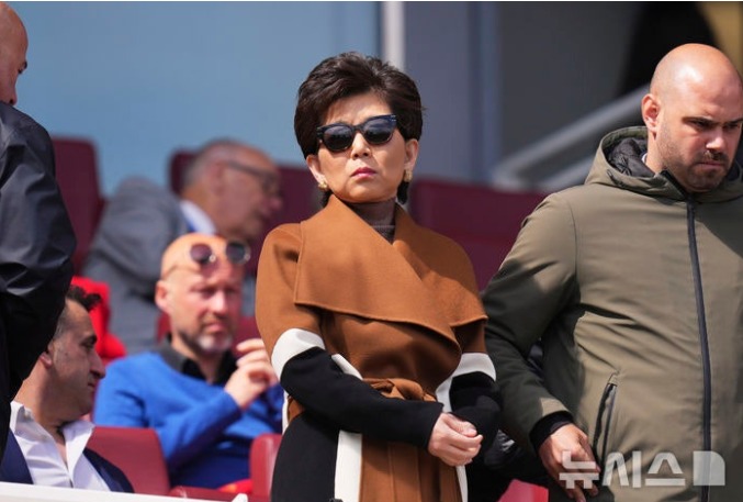 [런던=AP/뉴시스]미국의 한국계 여성 사업가 미셸 강(한국명 강용미)이 4월19일 런던 아스널 스타디움에서 아스널 FC와 올림피크 리옹 간 여자 챔피언스리그