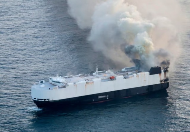 전기차 등 차량 3000대를 싣고 멕시코로 향하던 이 선박에서 불이 나 대피한 선원들은 모두 구조됐다/사진=뉴시스