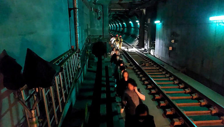지난달 31일 오전 서울 지하철 5호선 승객들이 소방대원의 도움을 받아 마포역~여의나루역 구간 선로를 통해 열차 화재에서 대피하고 있다. 연합뉴스