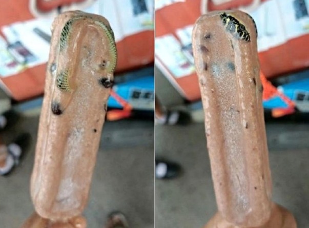 검정색을 띠는 작은 뱀이 아이스크림에 얼어 있었고, 뱀의 비늘과 눈까지 선명하게 보여 충격을 주고 있다. 남성은 “내가 직접 찍은 사진”이라며 “어떻게 이런 일이 있을 수 있냐”고 토로했다. 사진은 페이스북에서 1만 건 가까이 공유되며 화제가 됐다. 이를 본 네티즌들은 “너무 무섭다”, “소름 돋는다” “위생이 끔찍하다, 뱀이 어떻게 들어갔지?”라며 경악했다. 뱀이 아이스크림 속에 들어간 경위와 어떤 종류의 뱀인지 아직까지 밝혀지지 않았으나, 일부 네티즌들은 ‘황금나무 뱀’일 것으로 추측했다.
