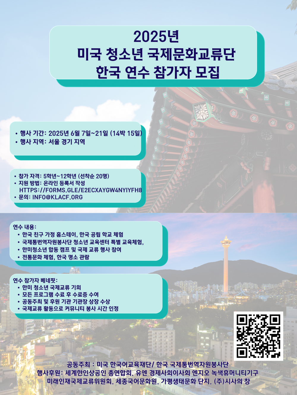 2025 미국 청소년 국제교류단 한국 연수 참가자 모집