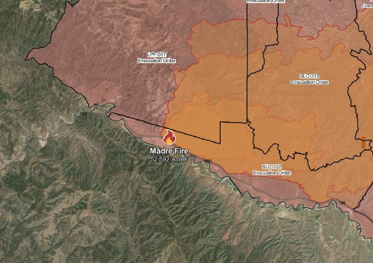 '마드레 산불'(Madre Fire)이라고 불리는 이번 산불은 국유림을 지나는 116번 주 고속도로를 따라 번지고 있다.