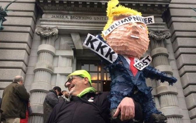 지난 2017년 2월9일 도널드 트럼프 1기 장부 당시 미 샌프란시스코의 제8 순회 항소법원 앞에서 한 시위자가