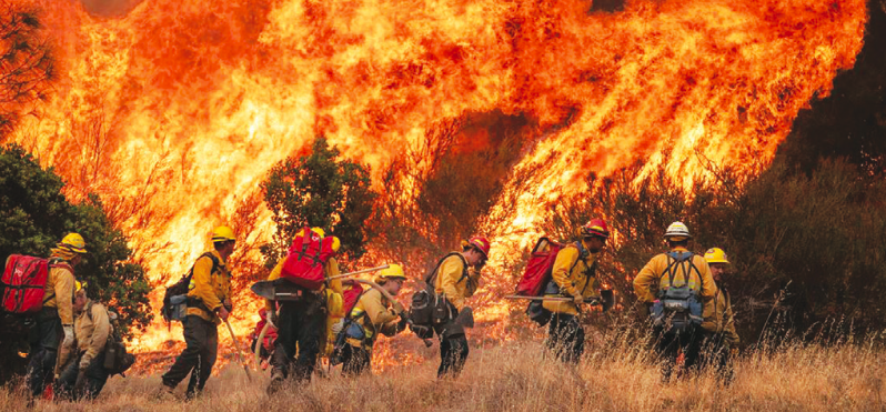 소방대원들이 10일 요세미티 국립공원에서 발생한 대형 ‘워시번 산불’ 진압 작전을 벌이고 있다. 이번 산불로 전 세계에서 가장 큰 나무인 자이언트 세쿼이어가 위협을 받고 있다.