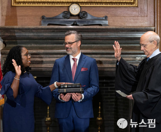 © 뉴스핌 취임선서하는 커탄지 브라운 잭슨 미 대법관. [사진=로이터 뉴스핌]