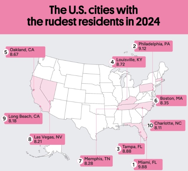 온라인 언어학습 마켓플레이스인 프레플리(Preply)는 주민들을 대상으로 도시의 사회적 행동에 대한 설문 조사를 통해 미국에서 가장 무례한 도시 목록을 작성했다.