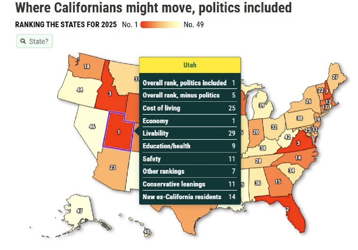 LA 데일리 뉴스는 최근 CNBC, 월렛허브, 스테잇랭크 등이 발표한 자료를 종합해 올해(2025년) CA주를 떠나 이주하기 좋은 최적의 주 순위를 분석했습니다.
