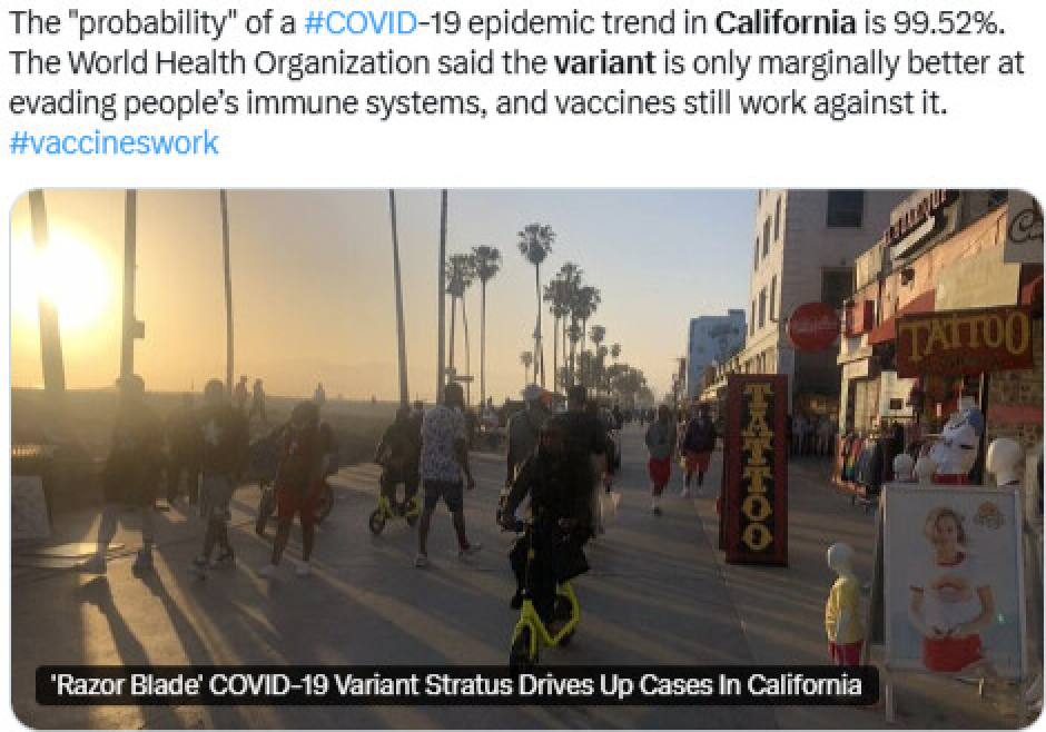 CDC와 캘리포니아 보건당국은 백신 접종이 중증화와 입원, 사망 등의 위험을 크게 낮춘다고 강조하고 있다.