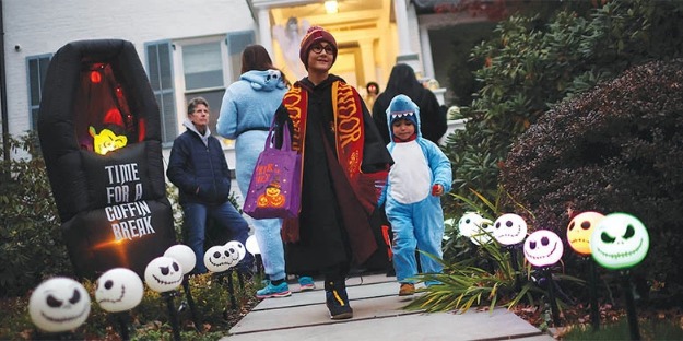 지난해 핼로윈 복장을 한 어린이들이 트릭 오어 트릿에 나가는 모습. [로이터]
