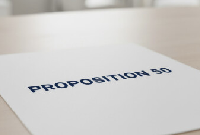 에머슨 컬리지 여론조사에 따르면, 캘리포니아 유권자의 57%가 주민발의안 50에 찬성했다.