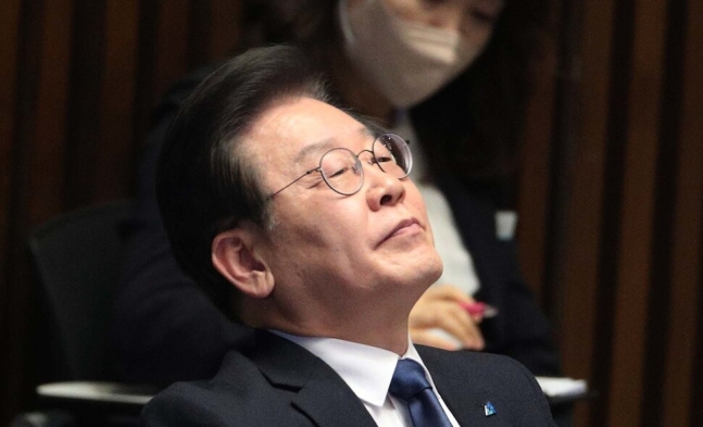 이재명 더불어민주당 대표가 27일 오후 국회 본회의장에서 한동훈 법무부 장관이 이재명 대표의 체포동의요청 이유설명을 하고 있는 동안 잠시 천장을 바라보고 있다. 김봉규 선임기자
