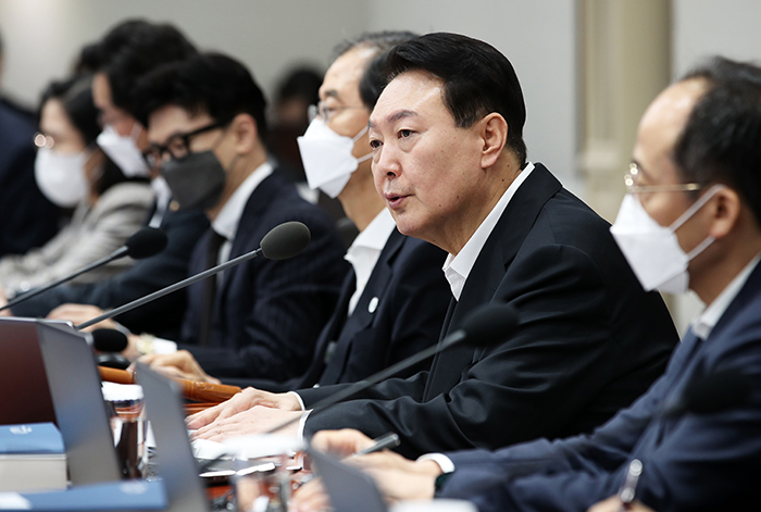 윤석열 대통령이 19일 용산 대통령실 청사에서 열린 제32회 국무회의에서 모두발언을 하고 있다. 2022.7.19 이승환기자