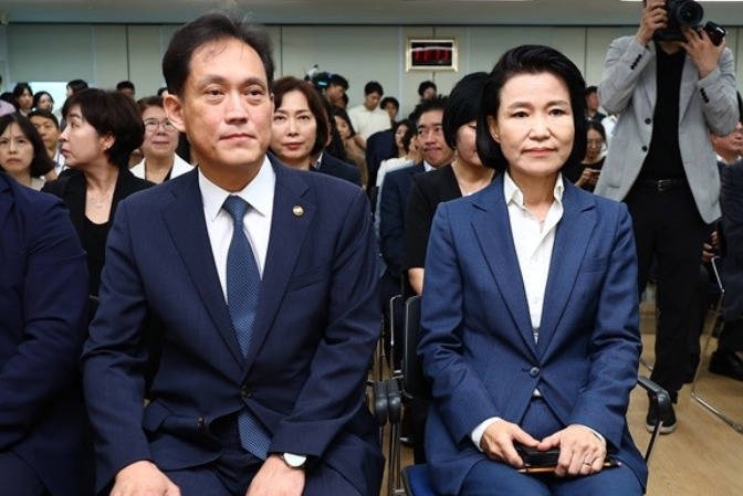 (왼쪽부터) 김태규 부위원장과 이진숙 위원장이 지난 7월31일 오전 정부과천청사 방통위에서 열린 취임식에 나란히 자리에 앉아있다. ⓒ연합뉴스