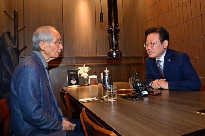 ‘보수 원로’ 윤여준 만난 이재명…“사법리스크 앞 중도 외연확장”