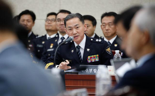 김수영 제주경찰청장이 23일 오후 제주도청 탐라홀에서 열린 국회 행정안전위원회의 제주경찰청 국정감사에서