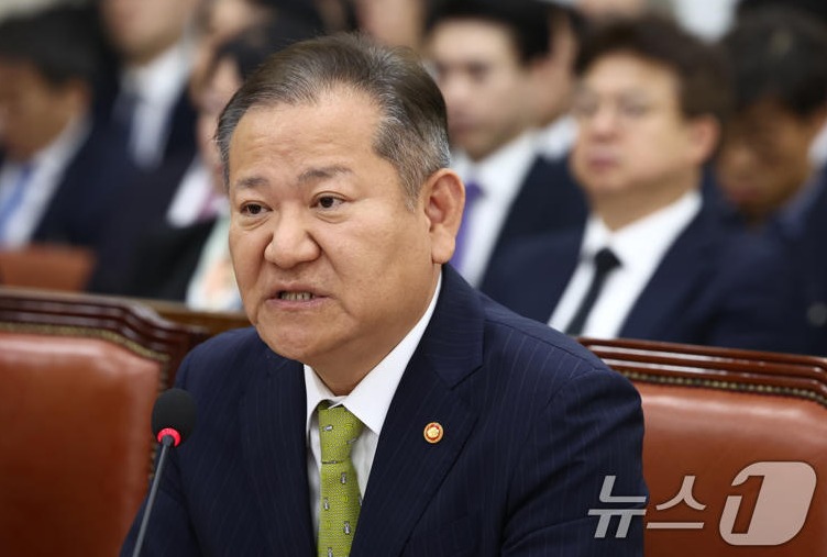 이상민 행정안전부 장관이 25일 오전 서울 여의도 국회 행정안전위원회에서 열린 행정안전부·중앙선거관리위원회·진실 화해를위한