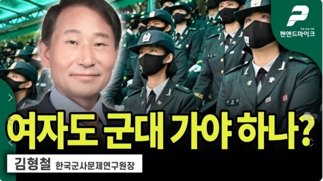 그는 이어 “그걸 잘 이렇게 유도해서 (만남) 기회를 자꾸만 제공한다는 측면에서 (여성 징병제가) 좋고, 또 유사시에는 전투력으로 활용되지 않겠느냐”고 덧붙였다.