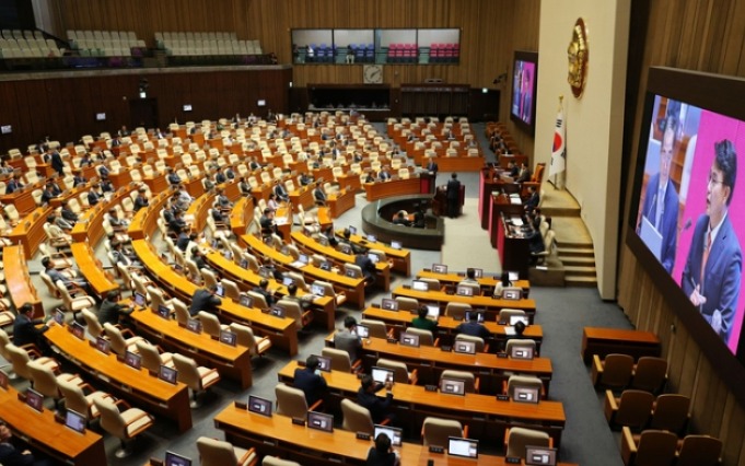 한덕수 국무총리가 10일 저녁 국회에서 열린 본회의 외교·통일·안보 분야 대정부질문에서 윤상현 의원의 질의에 답하고 있다. 연합뉴스