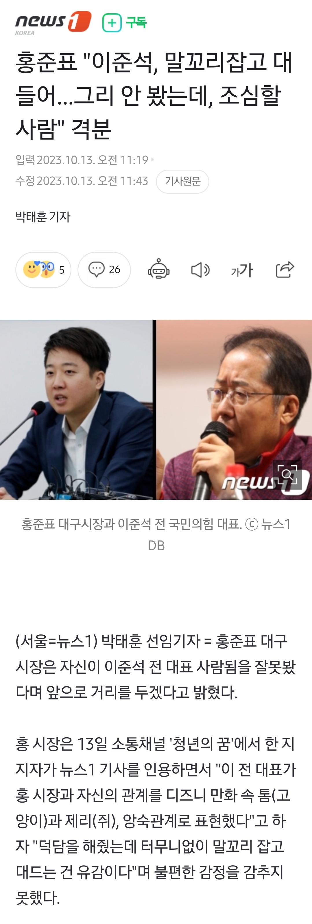 홍준표 "이준석, 말꼬리잡고 대들어…그리 안 봤는데, 조심할 사람" 격분